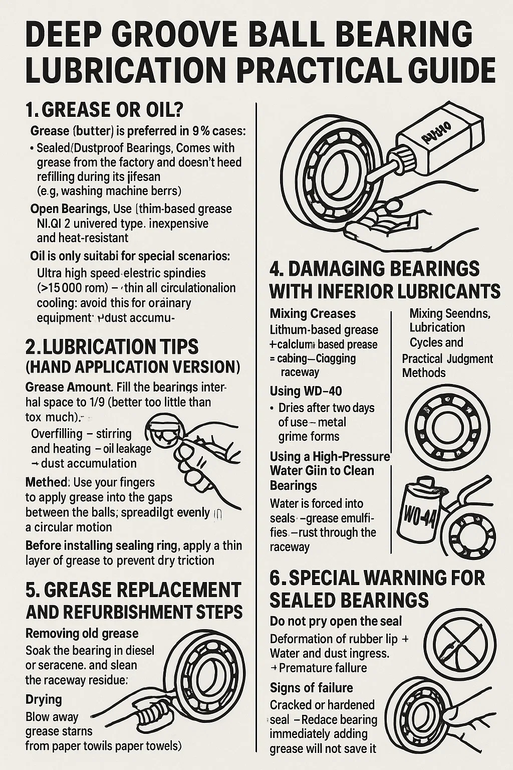 Rodamientos sellados/a prueba de polvo: Viene con grasa de fábrica y no necesita recarga durante su vida útil (por ejemplo, rodamientos de lavadora).